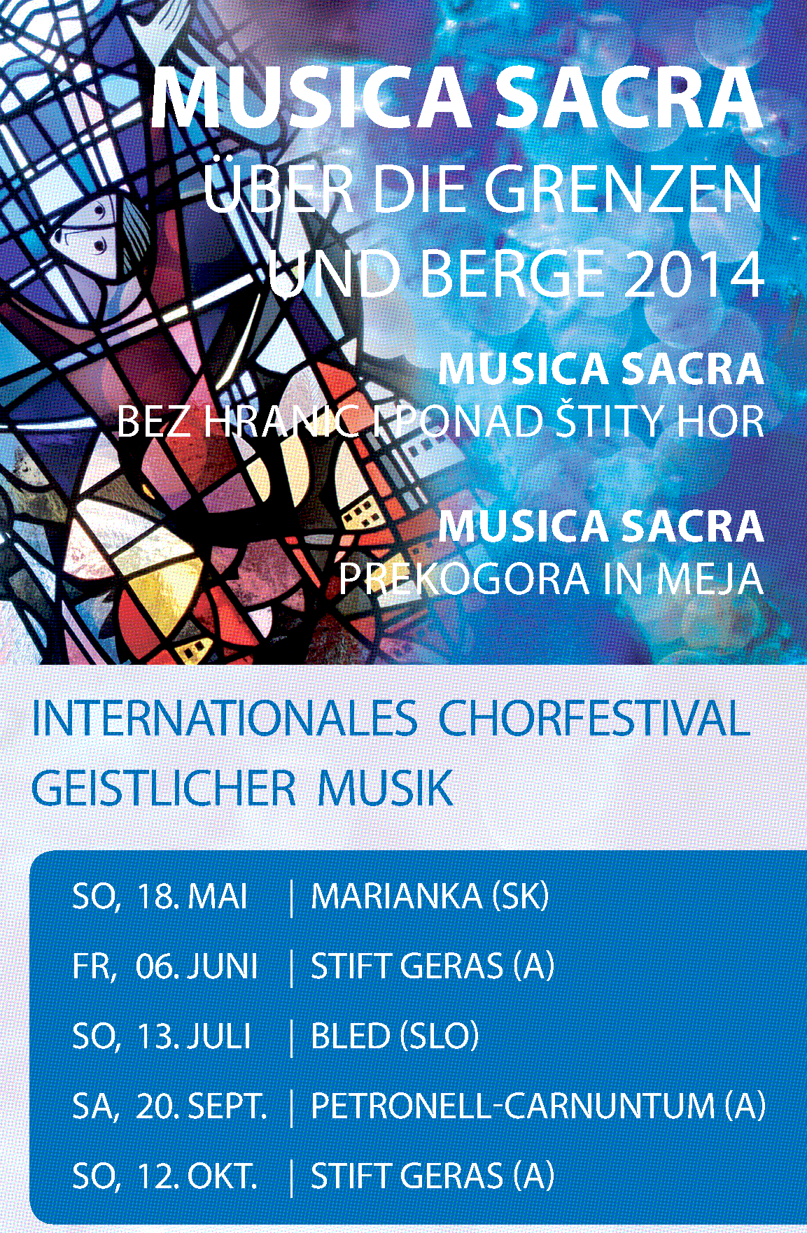 * „Musica Sacra über die Grenzen“ ist ein Internationales Begegnungsfest und Chorfestival Geistlicher Musik. Marianka (SK) ist die erste von fünf Stationen. Es folgen noch Geras, Bled (SLO), Petronell-Carnuntum und nochmals Geras.